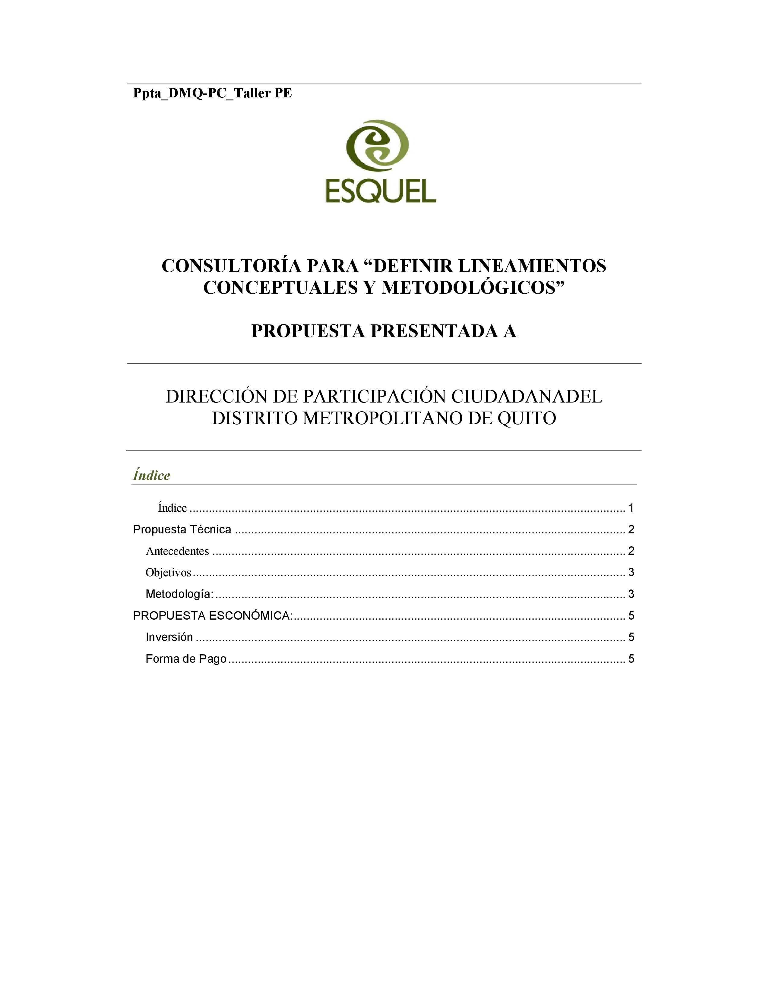 Esquel propuso a la Dirección de Participación Ciudadana del DMQ la realización de una consultor