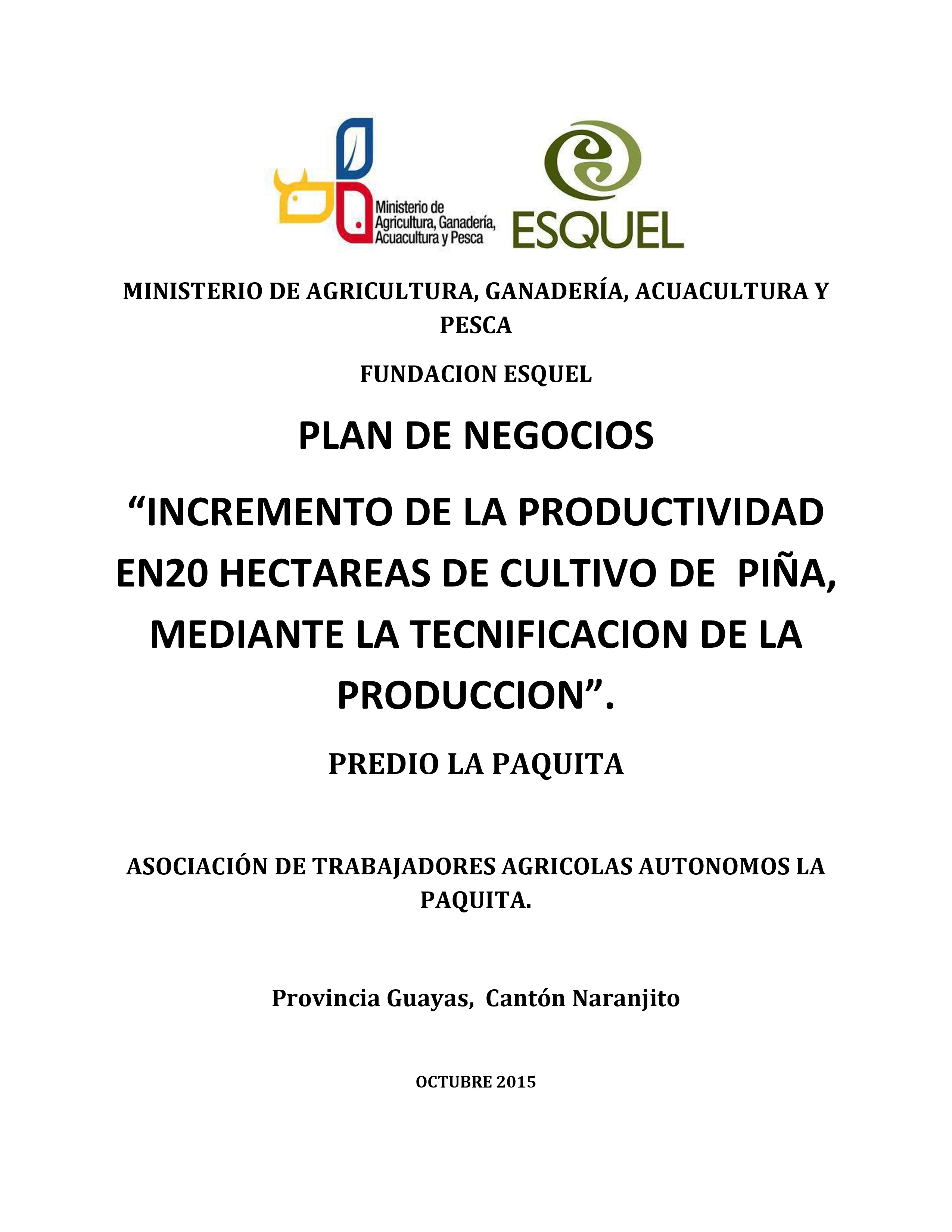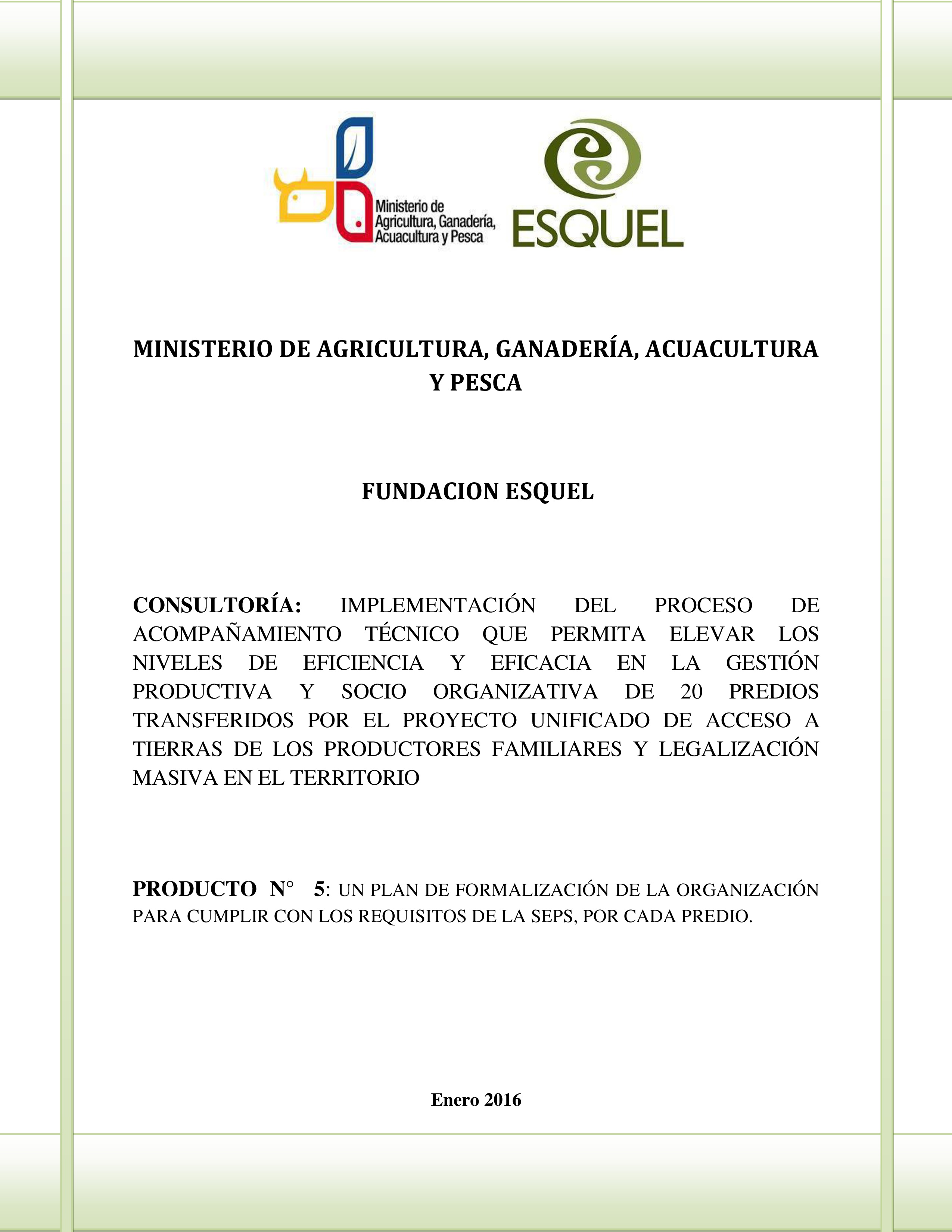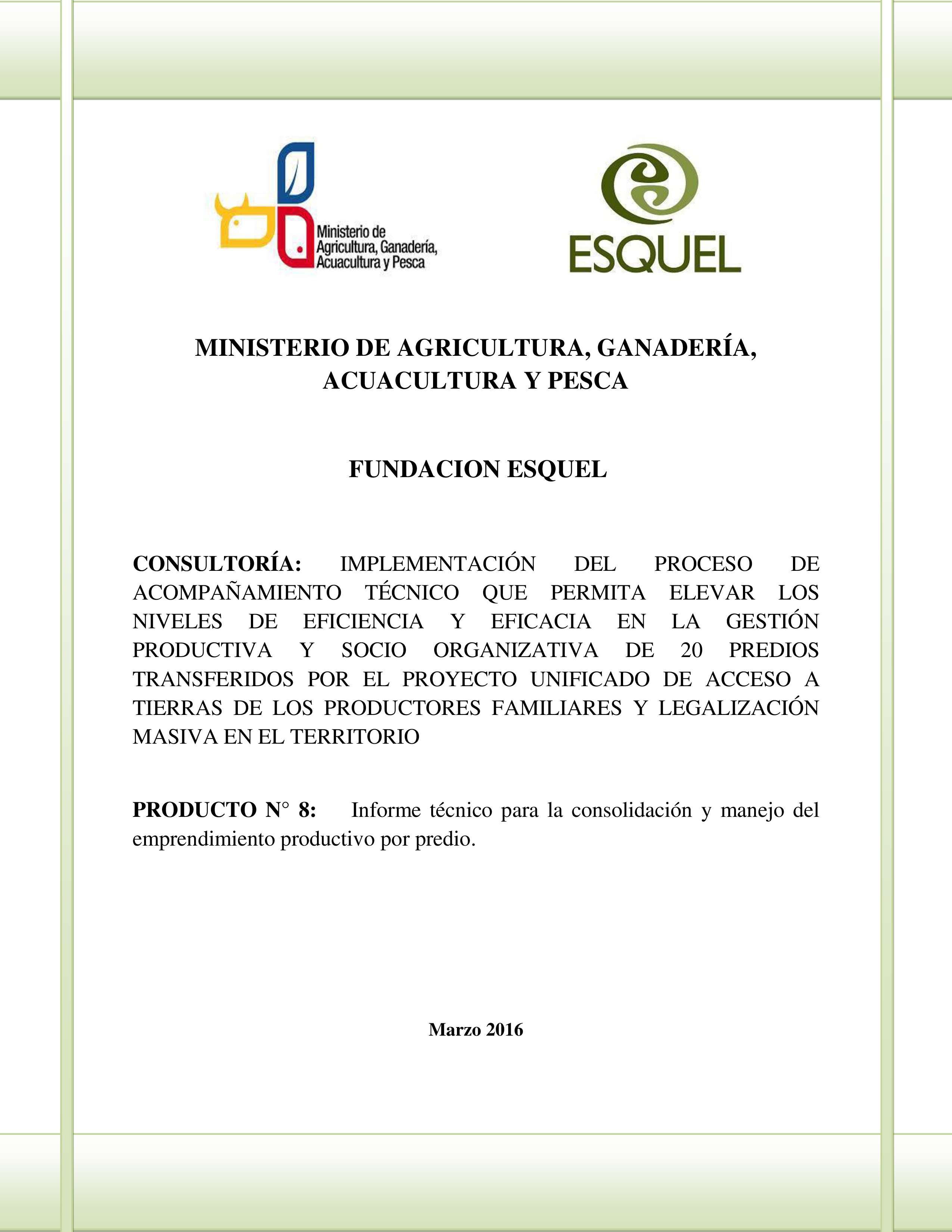 Por medio de esta consultoría, Fundación Esquel se comprometió a elaborar y entregar al MAGAP un