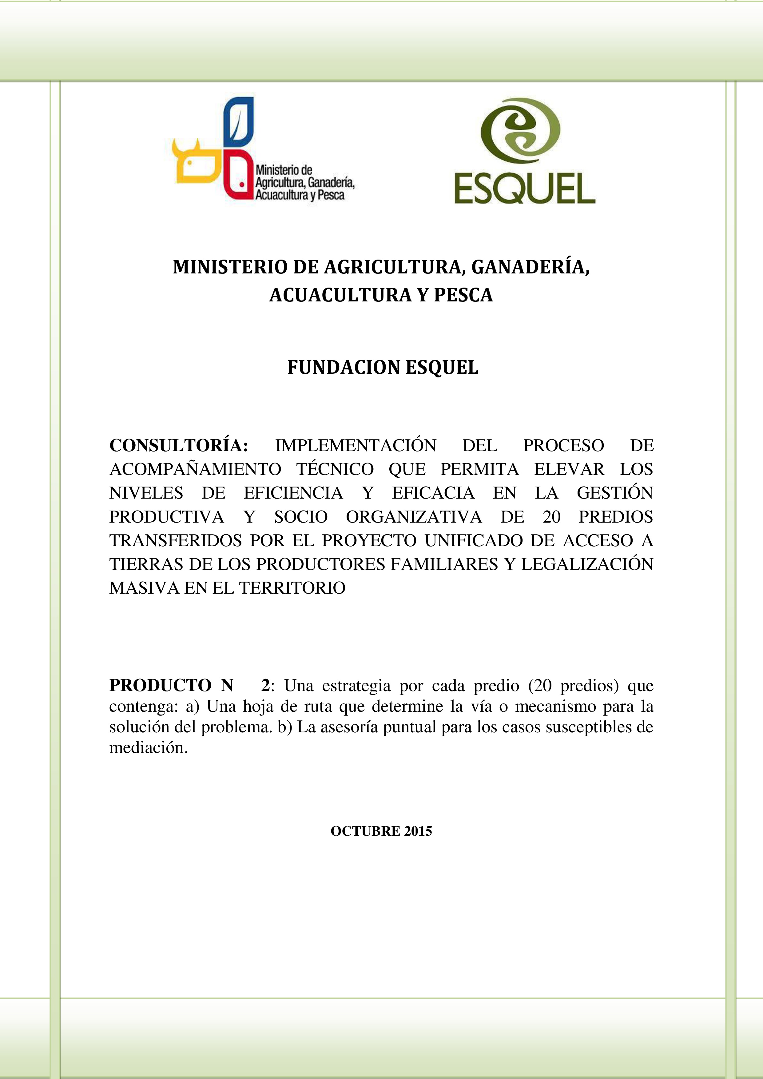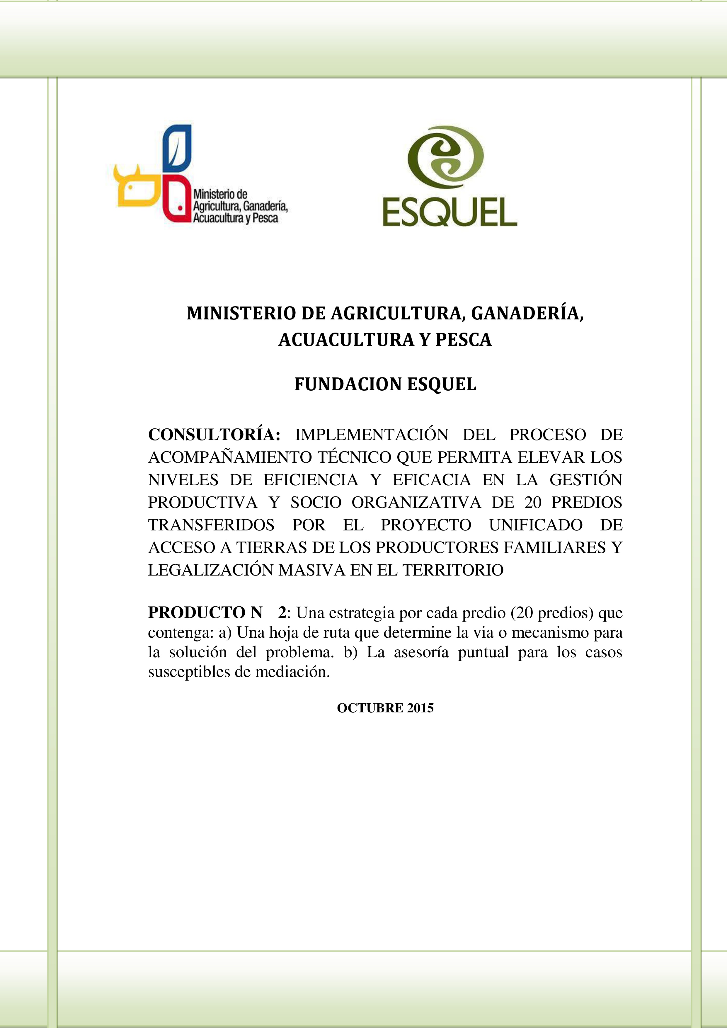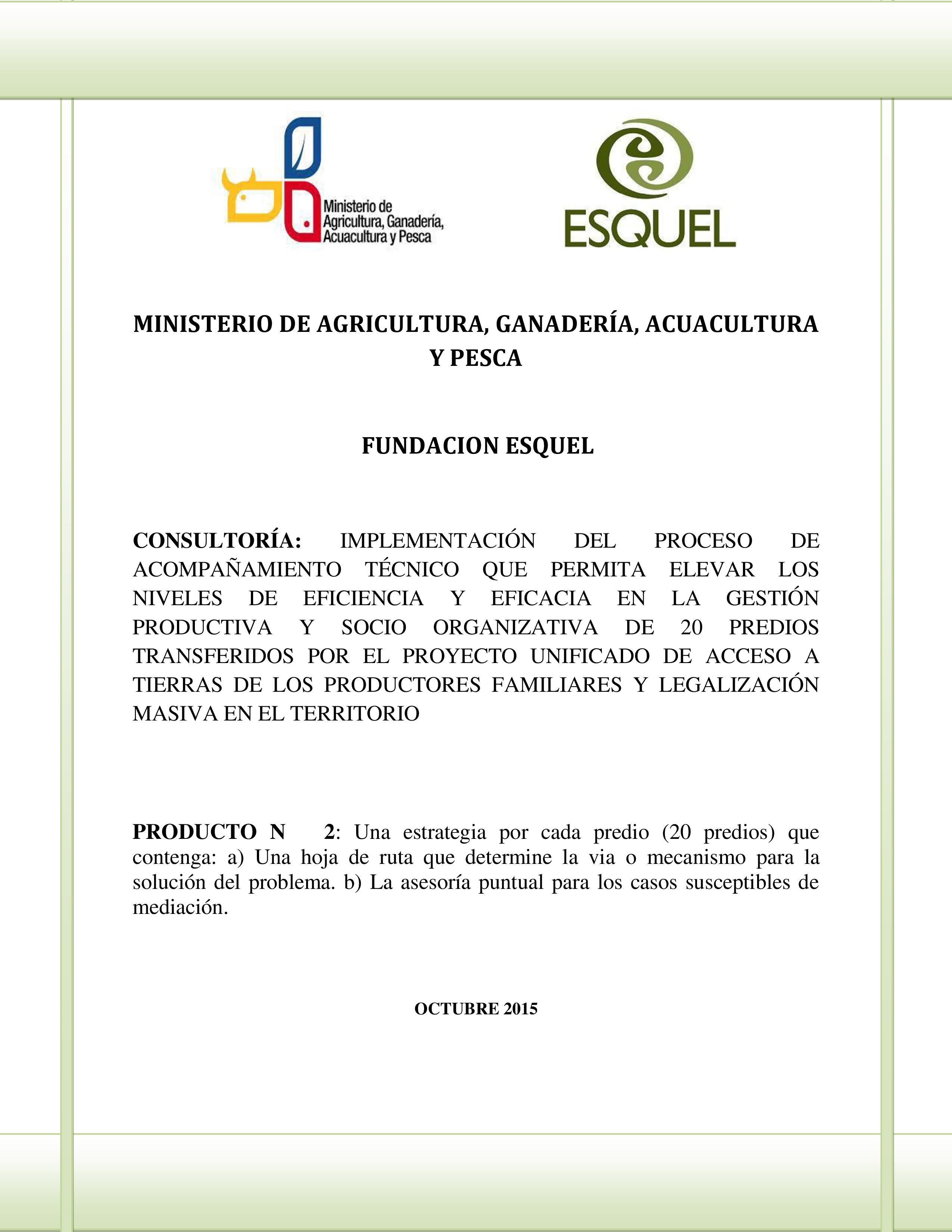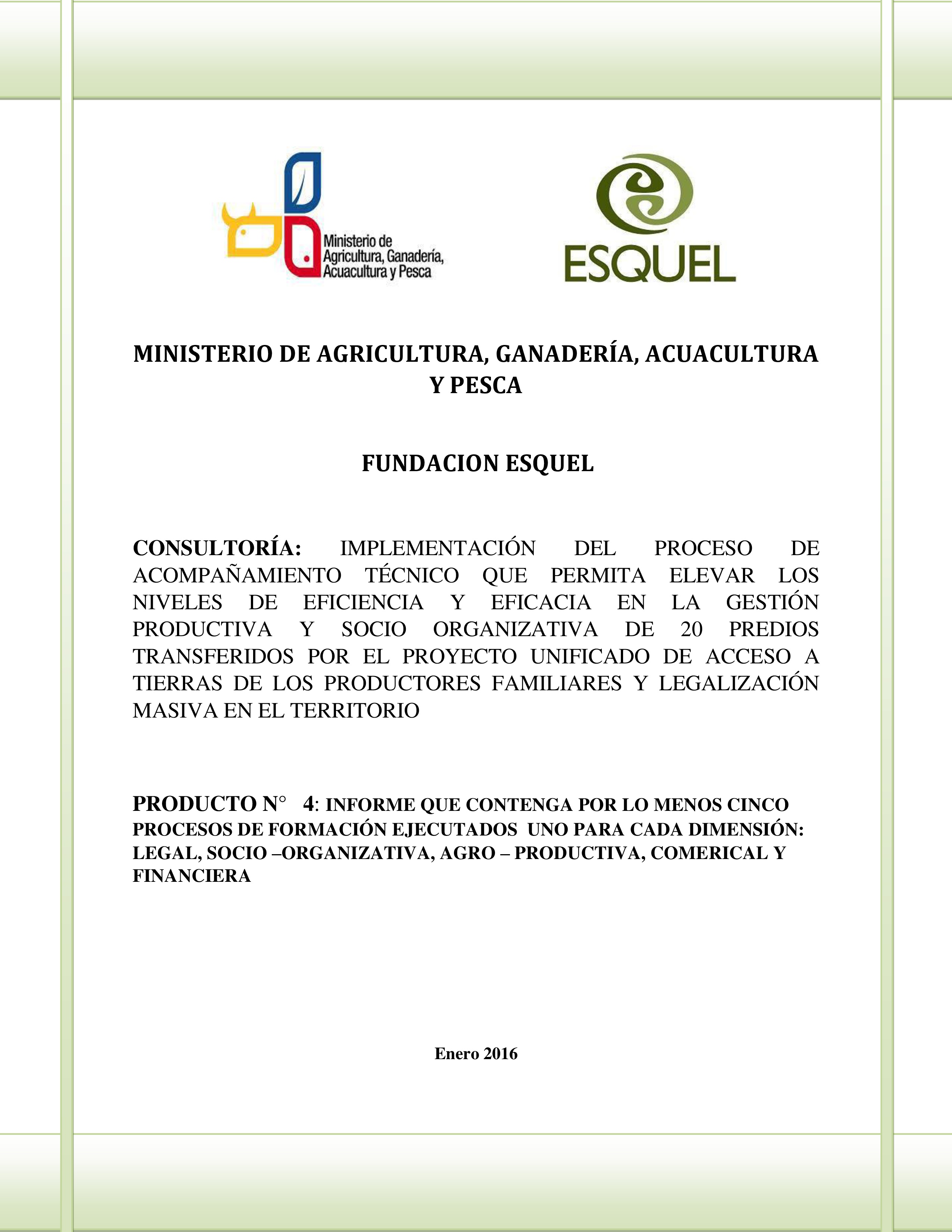 De mutuo acuerdo entre el MAGAP y Fundación Esquel, este Producto 4 se lo presenta a través de 5 i