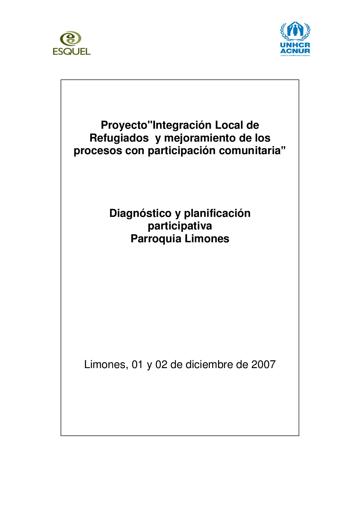 Este documento incluye los resultados de un diagnóstico y planificación participativos, elaborado