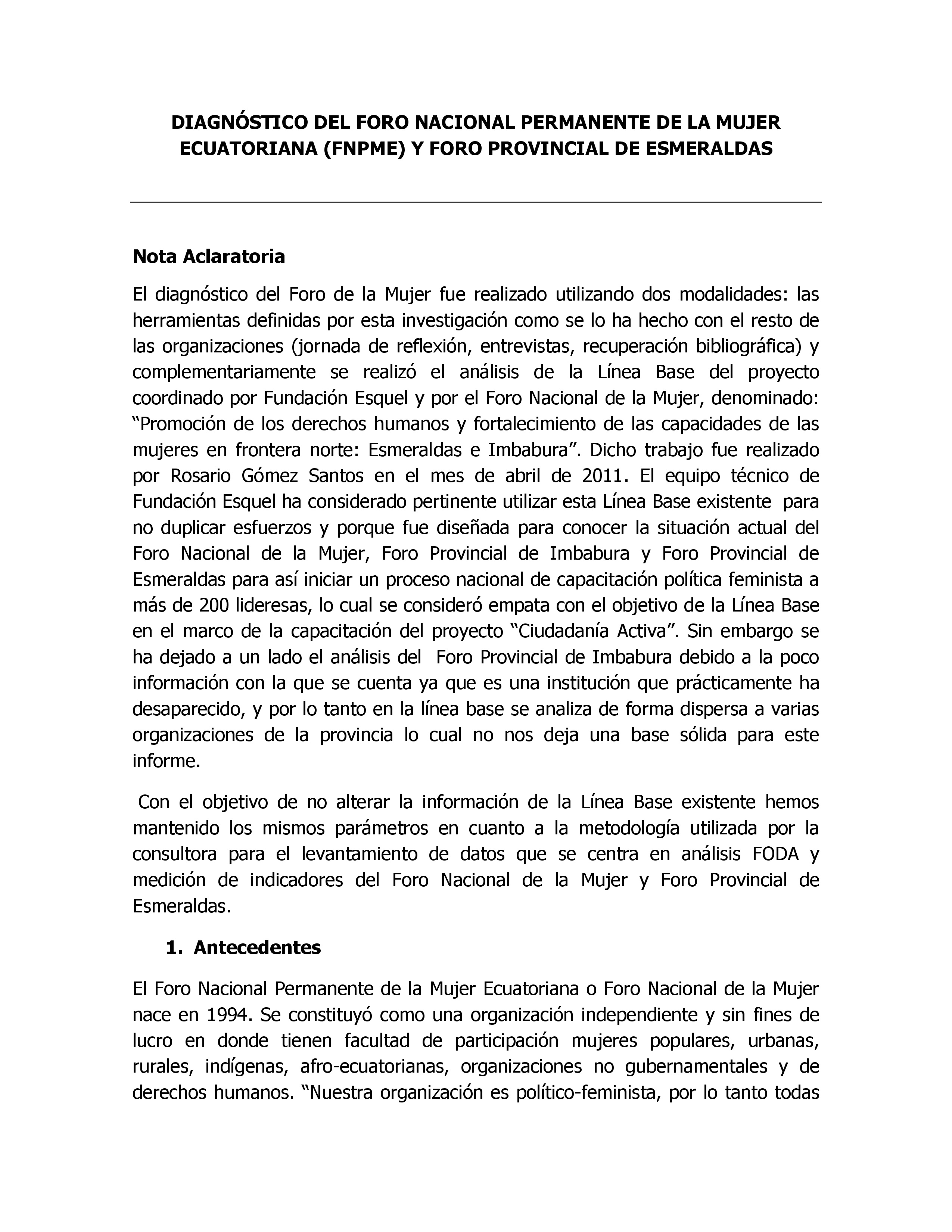 La presente consultoría levantó una línea de base para implementar una metodología que lleve ade