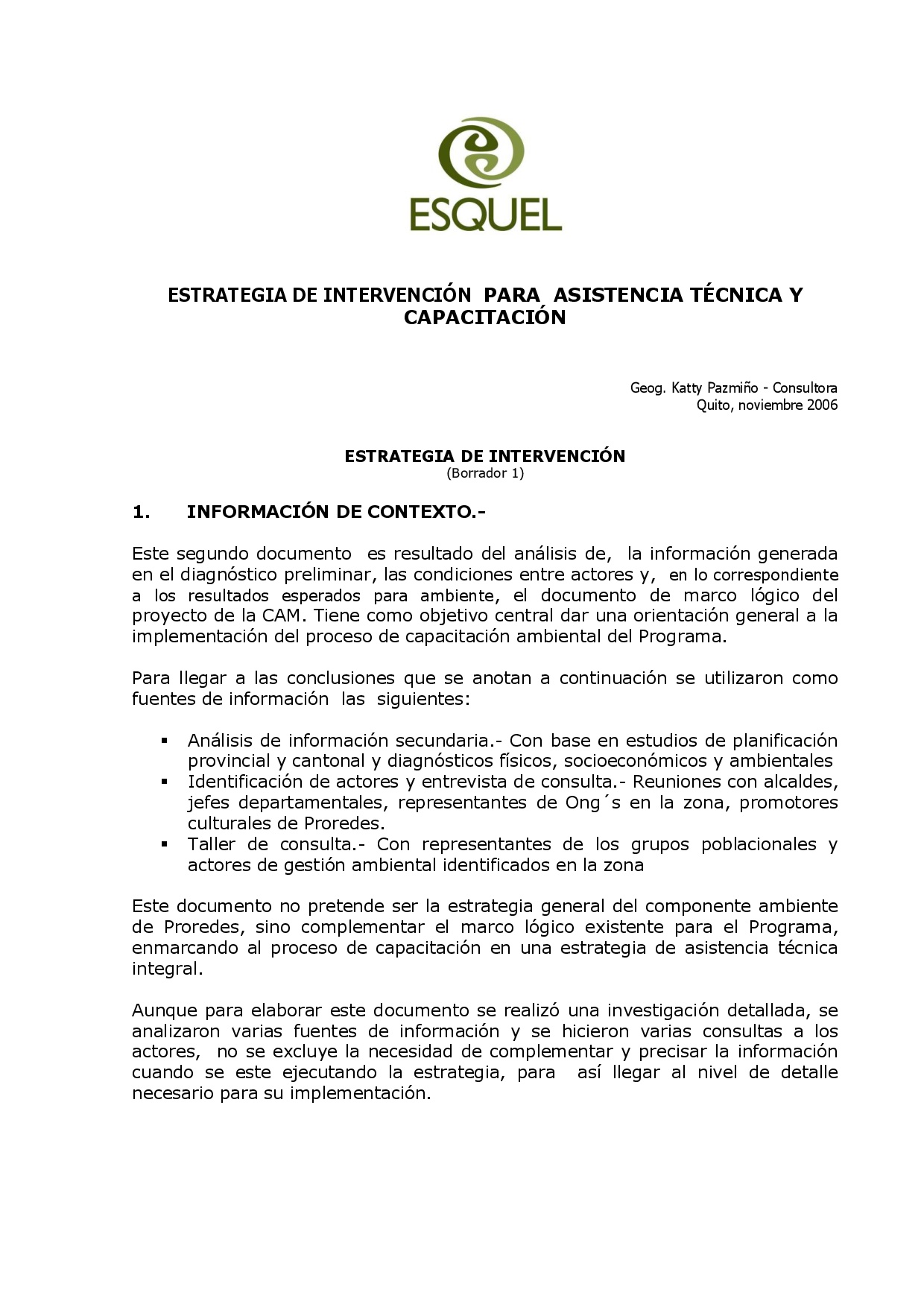 Este documento es resultado del análisis de la información generada en el diagnóstico preliminar,