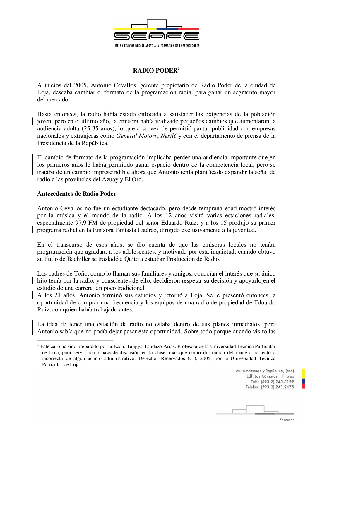 En el marco del Proyecto de Erradicación del Trabajo Infantil en Ecuador y Panamá, se propone dise