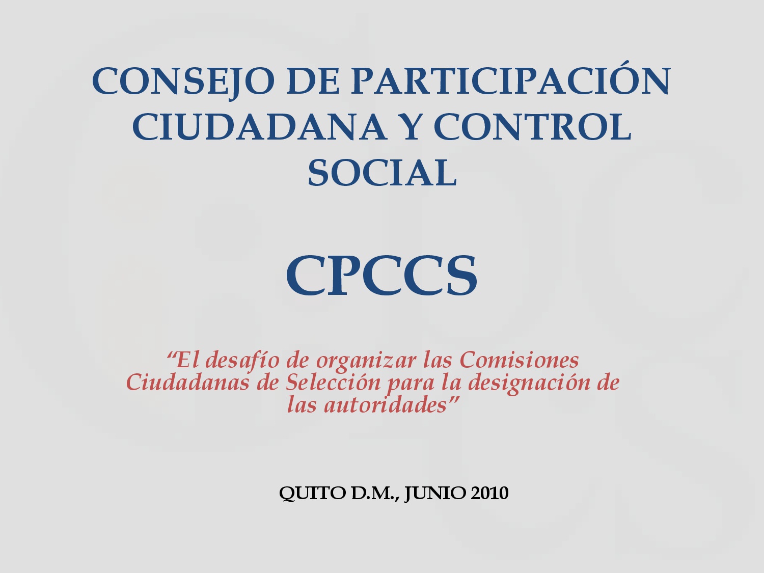 - Autor: Consejo de Participación Ciudadana y Control Social (CPCCS)