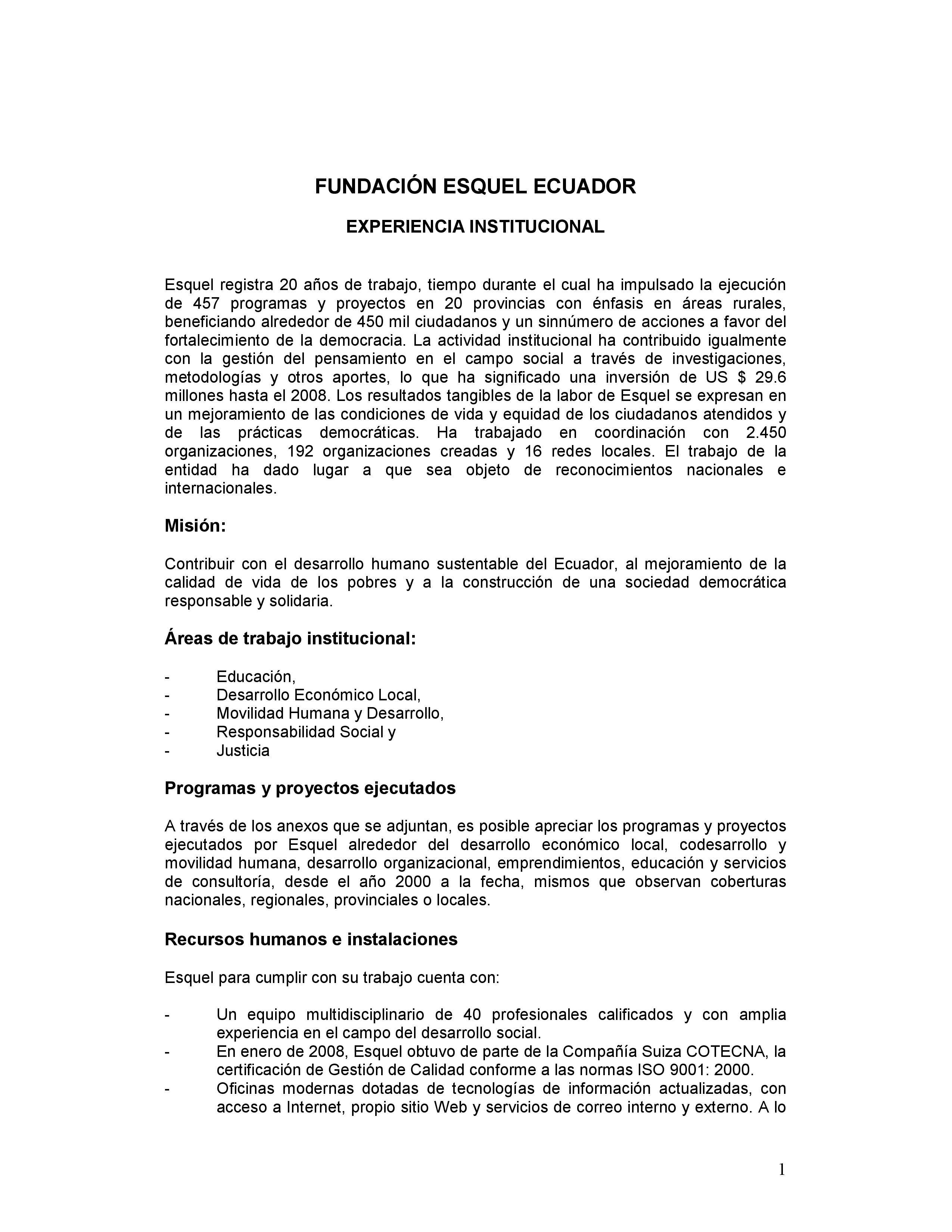 Esquel con 17 años de existencia ha trabajado en el fortalecimiento de la democracia y el desarroll