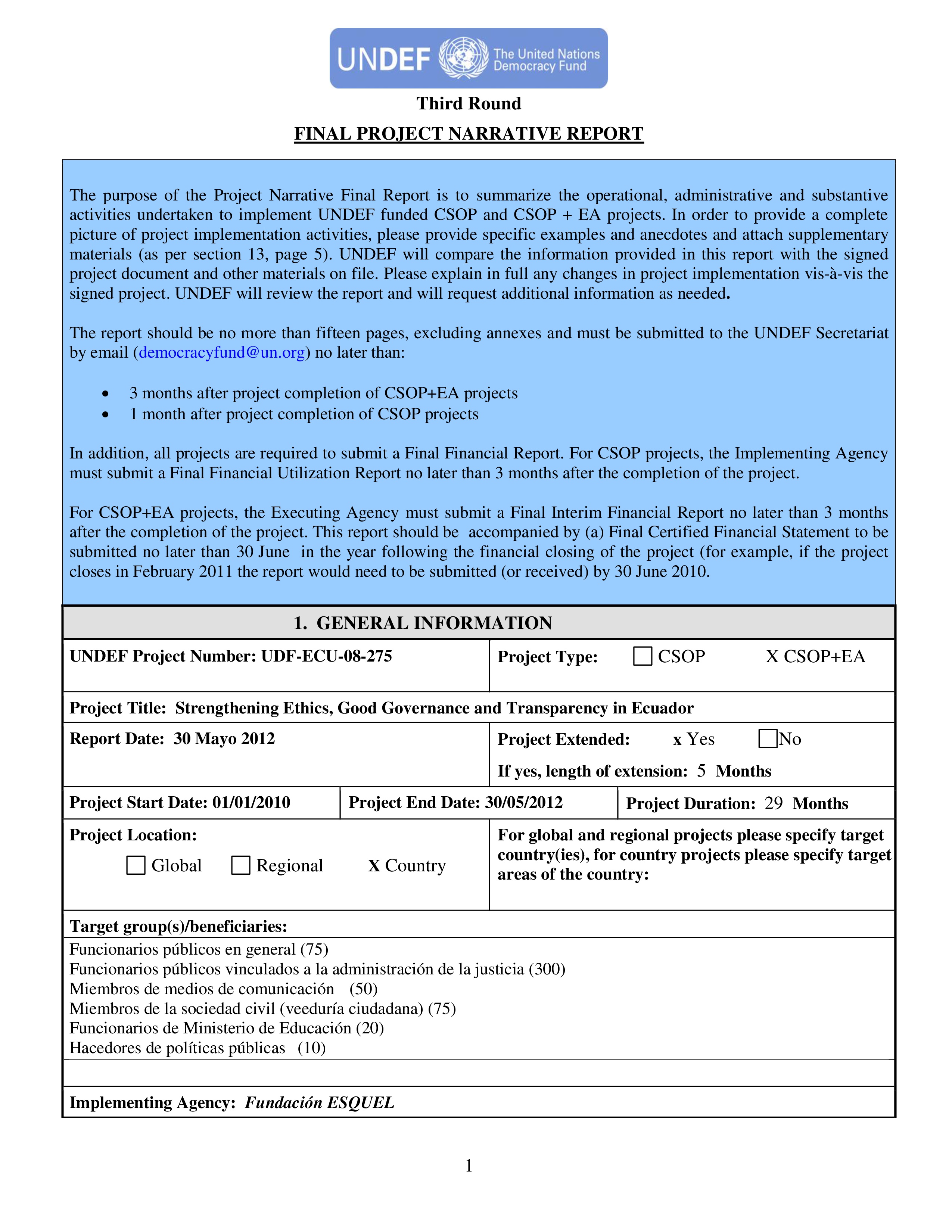 El 4 de Noviembre del 2010, la Fundación Esquel y el Consejo de Participación Ciudadana y Control