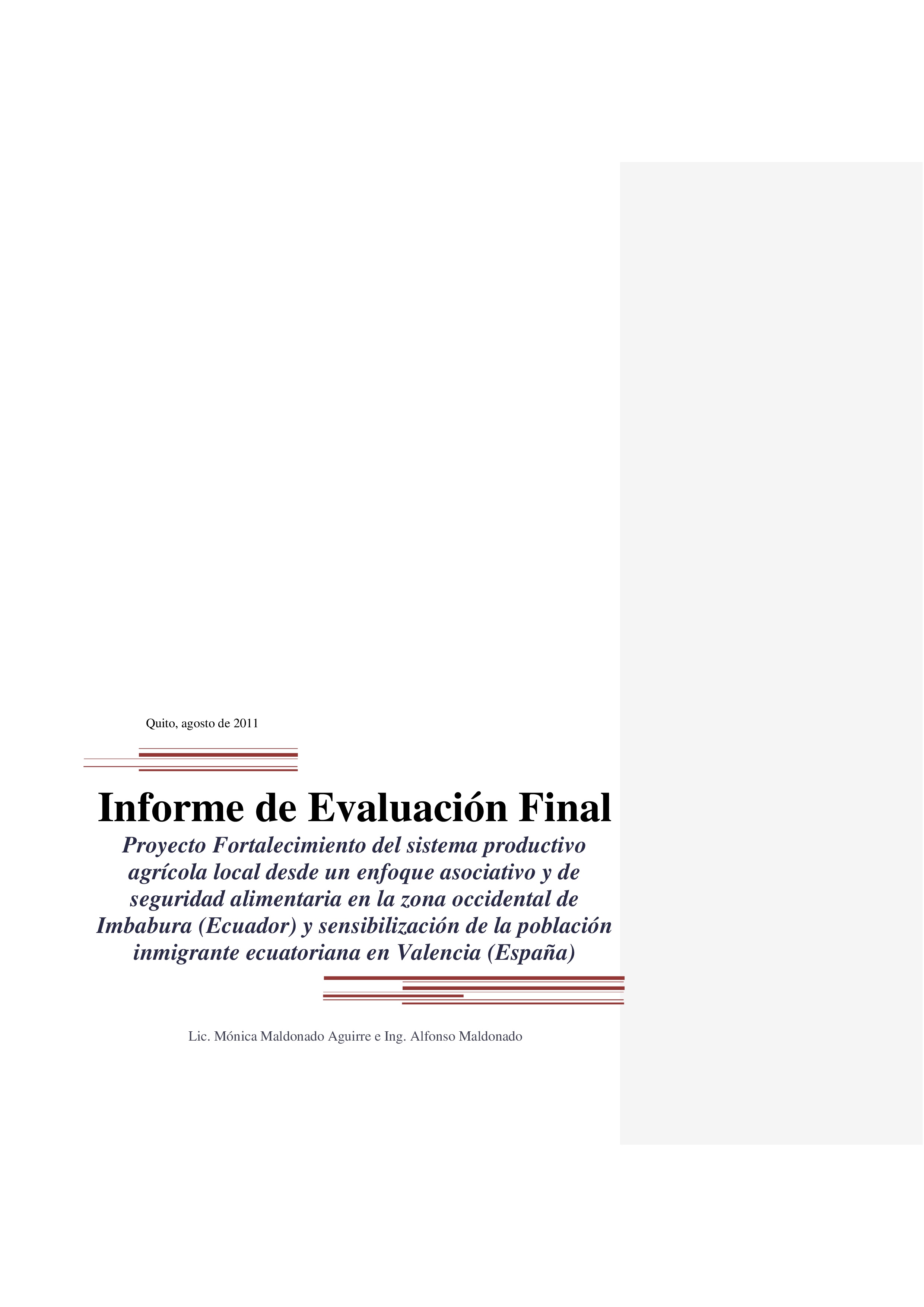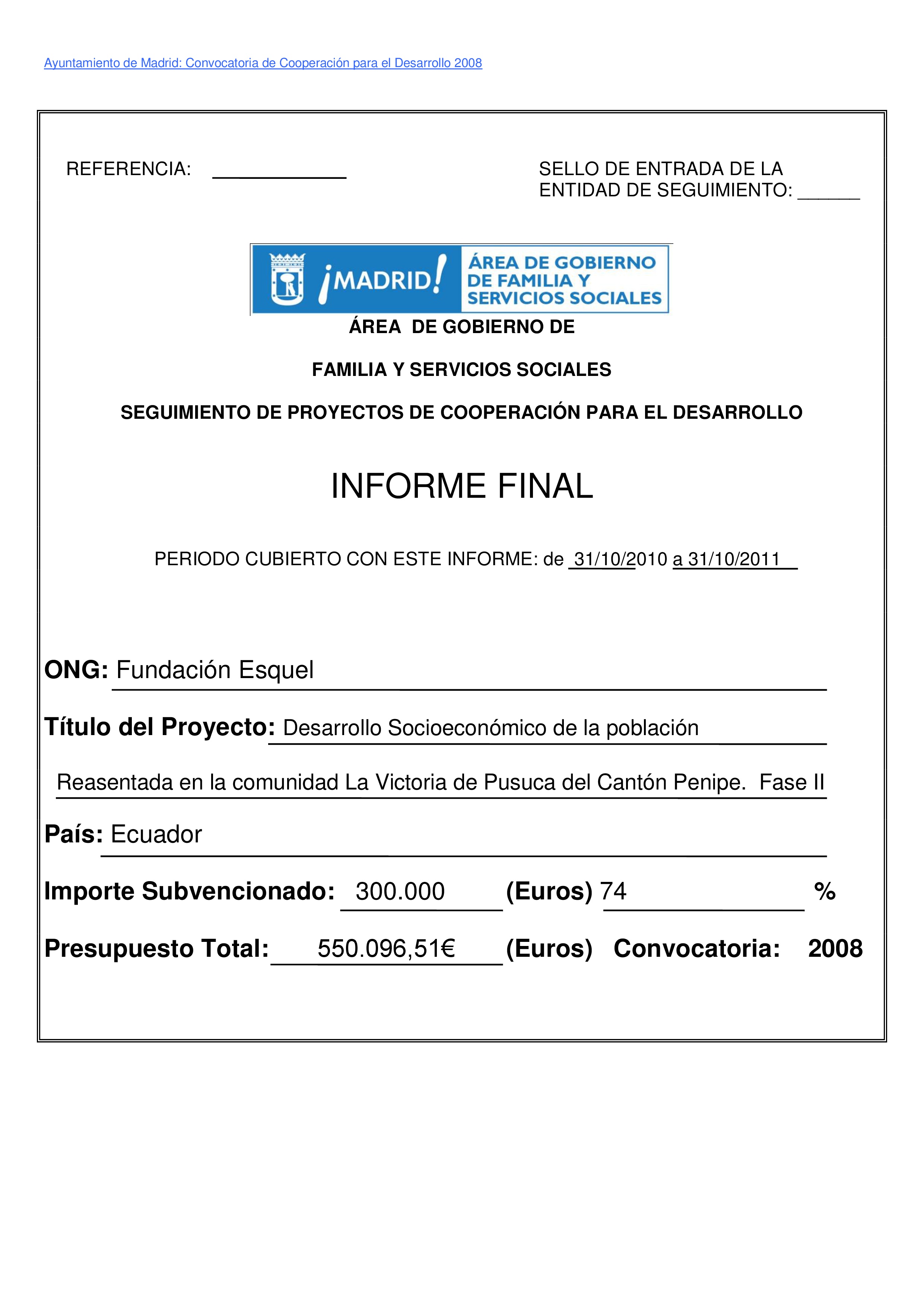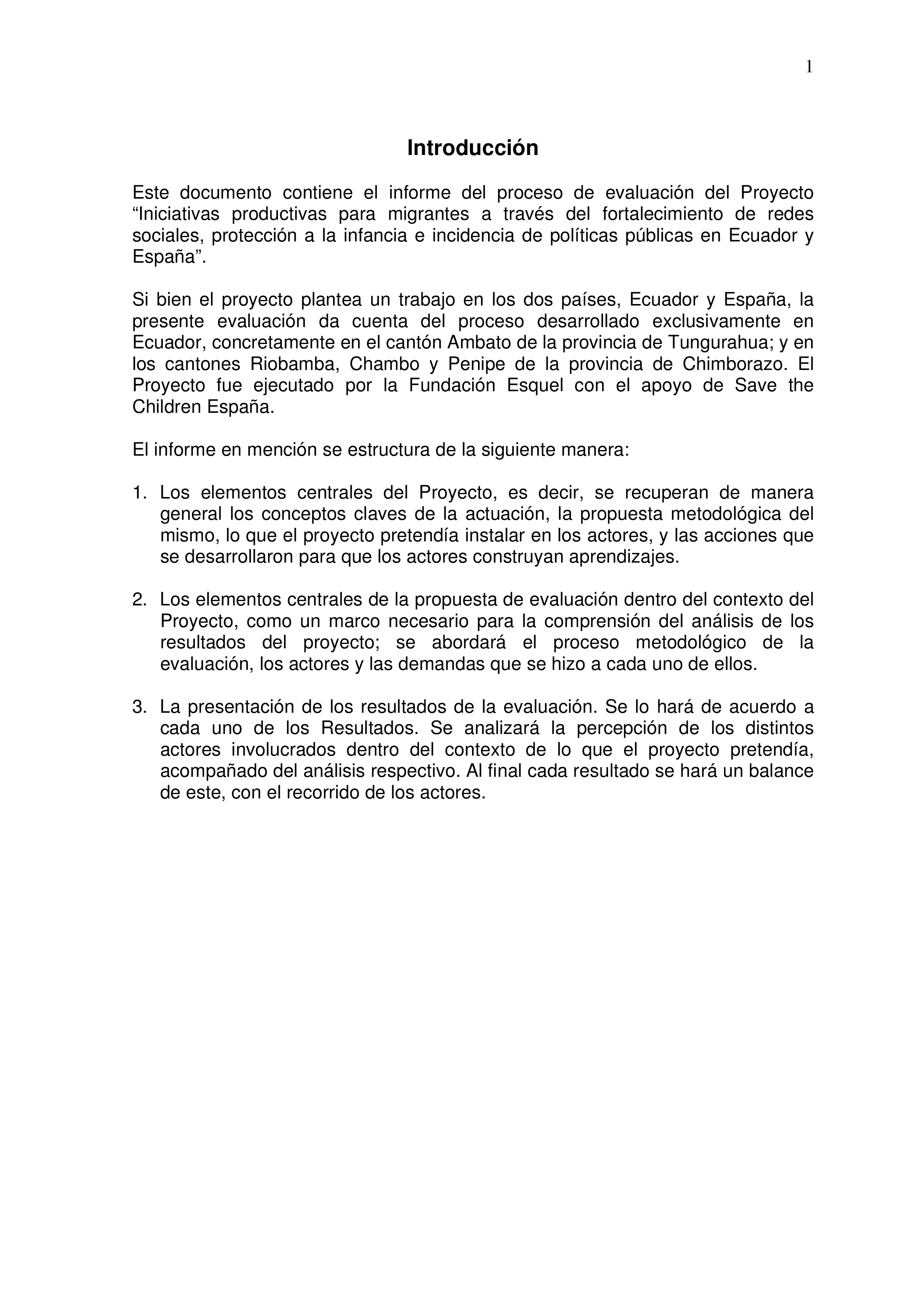 Este informe recoge los datos compilados durante la asistencia técnica de evaluación y seguimiento