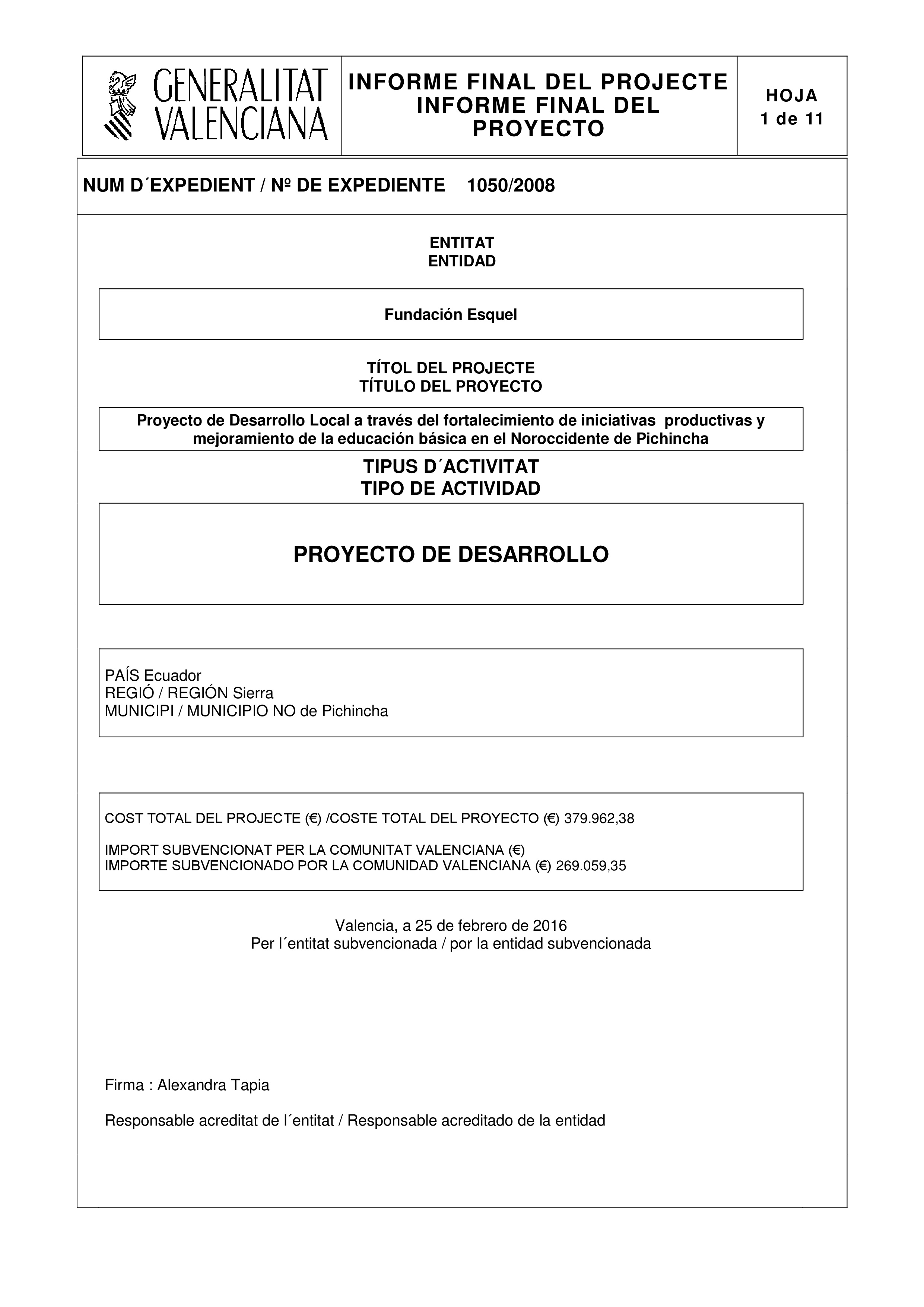 Resumen Ejecutivo de la sistematización actualizada de la experiencia de Fundación Esquel. Informe
