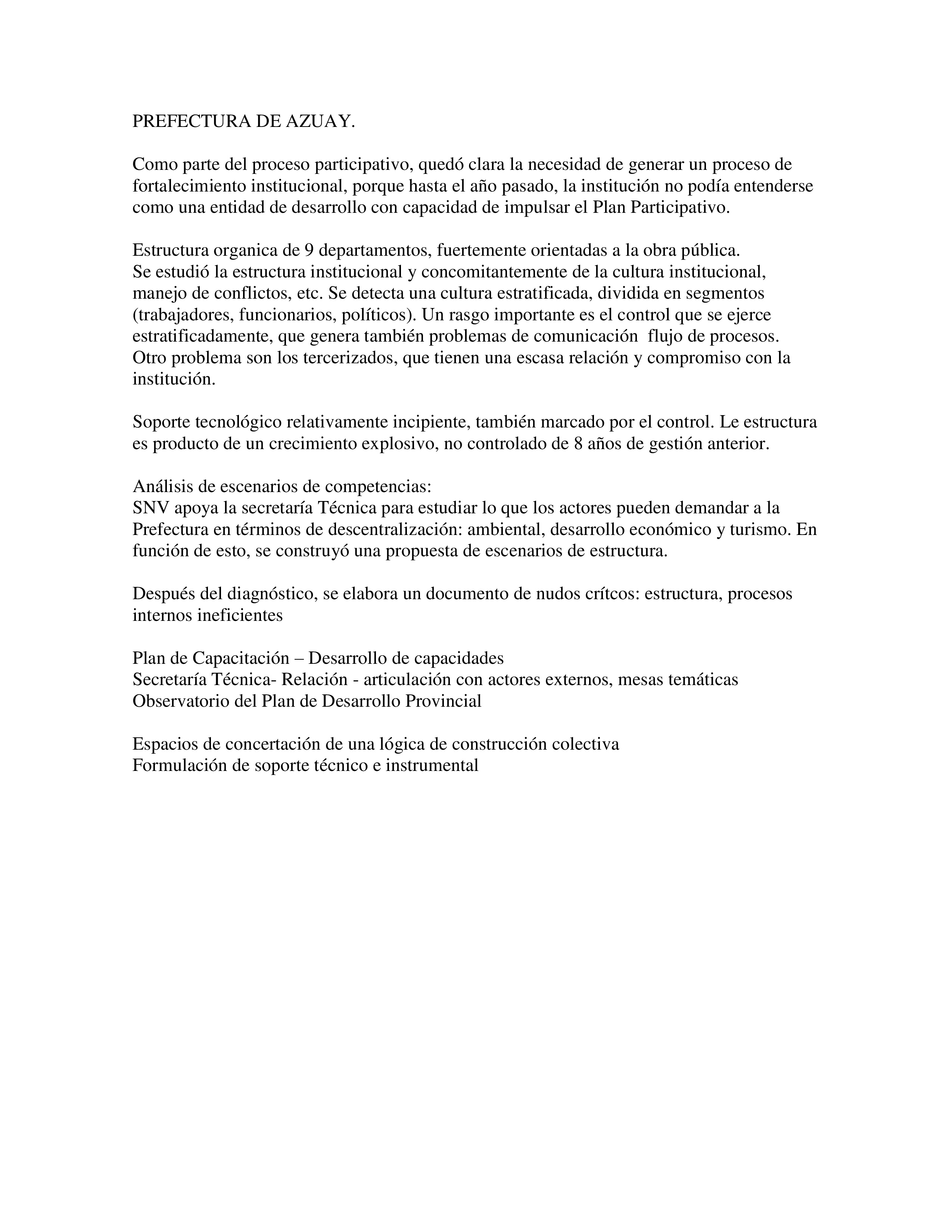 El resultado ha consistido en un tejido minucioso de la diversa información levantada, en el que se
