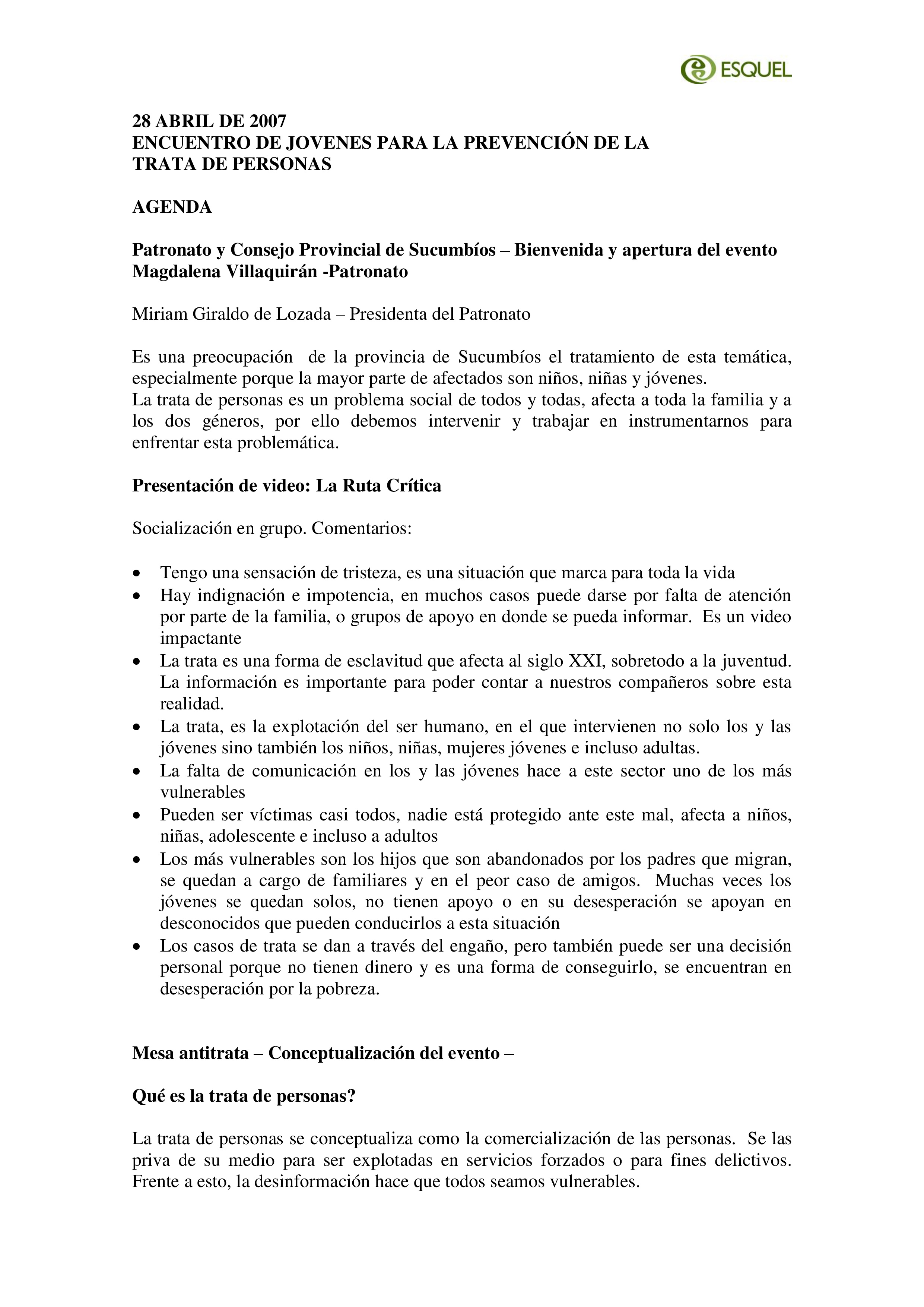 Esquel propuso a la Dirección de Participación Ciudadana del DMQ la realización de una consultor